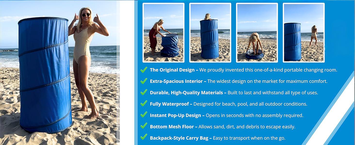 Designed with comfort in mind, The Portable Changing Room provides full coverage without feeling cramped. Made from durable, non see-through fabric, it delivers true privacy in any setting. Discover a better way to change on the go. Proudly invented to make life easier for you and your family!